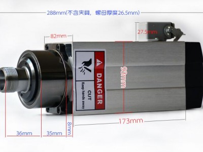 1.昌盛牌主轴电机(常州林南特种电机厂):目前国内市场使用率最高的一款电机,性价比高是昌盛主轴的优点,65%的机器上使用的都是昌盛主轴,低廉的价格,稳定的质量。深得新老用户喜爱。昌盛水冷GDZ系列包含:800W 65*158/195两款/1.5KW 80*188 80*213两种/2.2KW/3KW/4KW/4.5KW/5.5KW等型号。以及模具专用62MM 1.2KW昌盛主轴等高端电机。风冷方型电机。
